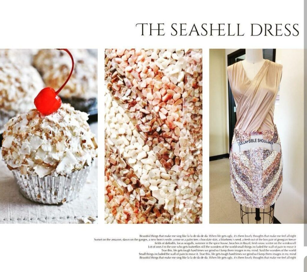 Avèk ti moso bagay sa yo ki te vinn sanble ak ti moso kokoye rape yo, mwen kreye yon aranjman inik e ki trè kokèt ak kokiyaj. Yon pi bèl model tekstil ki pa fasil pou jwenn nan lemonn (fine sea shell textured fabric in the world). Mwen reyalize yon bèl chedèv ki diferan nan tekstil ak enspirasyon. Jwenn enspirasyon nan ti desè lakay, se yon jwa ki inesplikab! Desè lakay kapab fè-w abiye kokèt ak kokiyaj! Ki manje lakay ki enspire ou?
