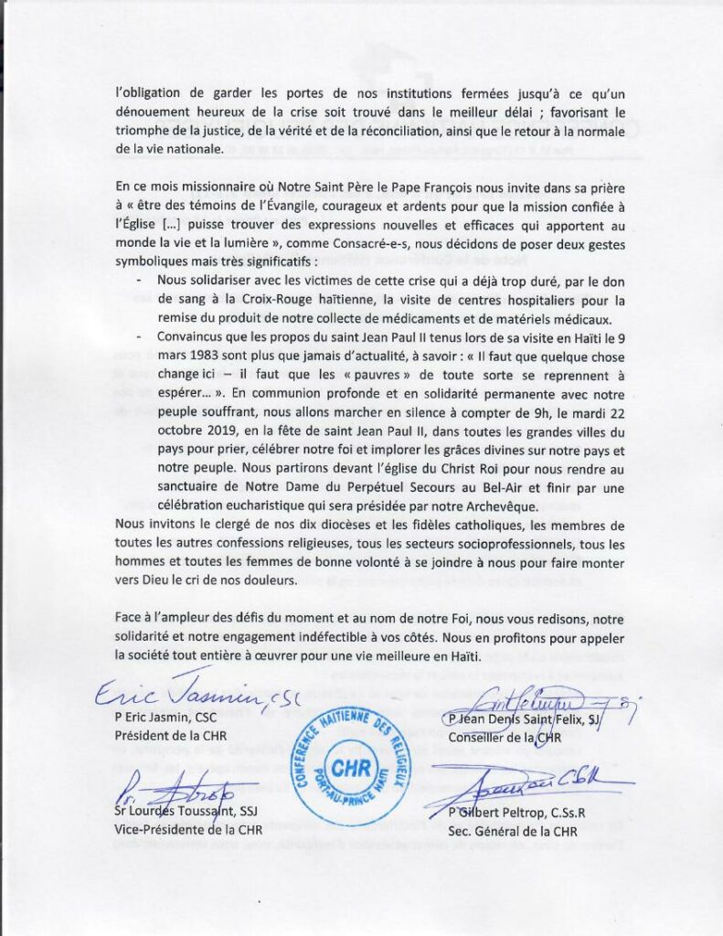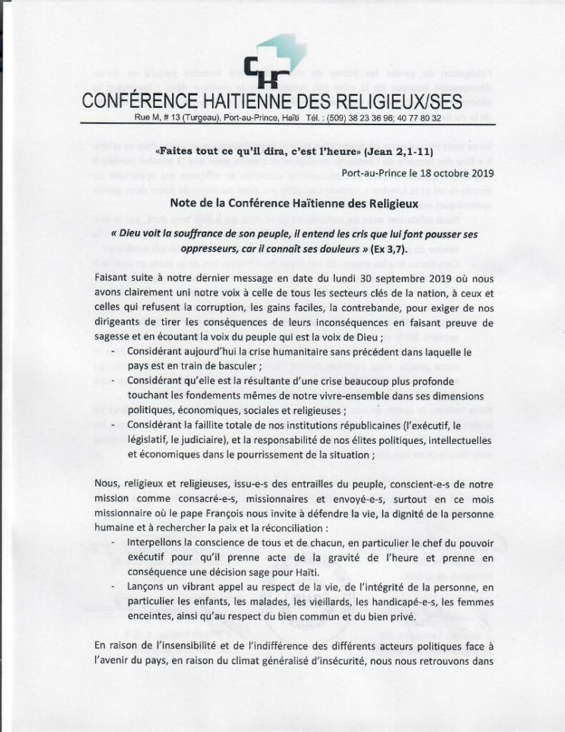 Note de la Conférence Haitienne des religieux