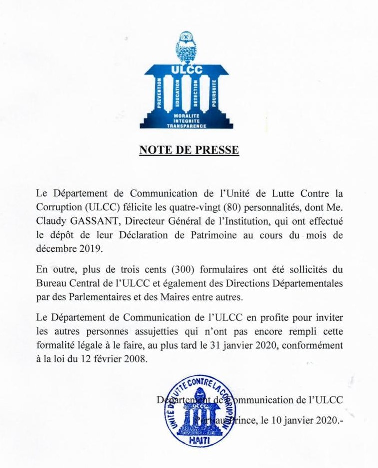 ULCC: Note de Presse