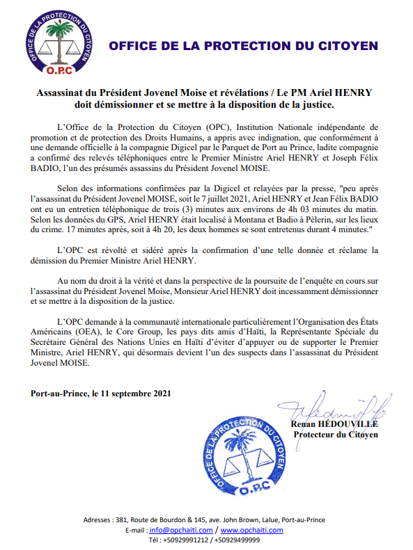 OPC : Le PM Ariel Henry doit démissioner et se mettre à la disposition de la Justice