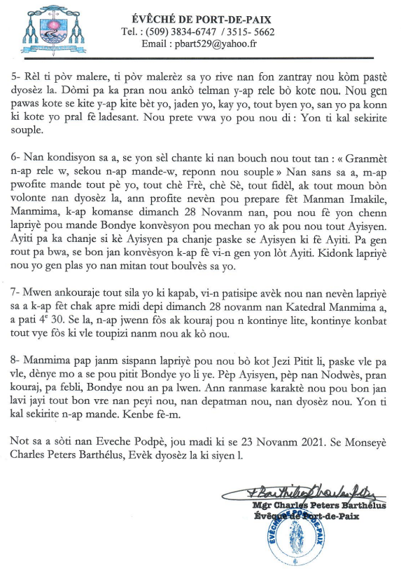 Nòt pou Laprès ki soti nan Eveche Pòdpè