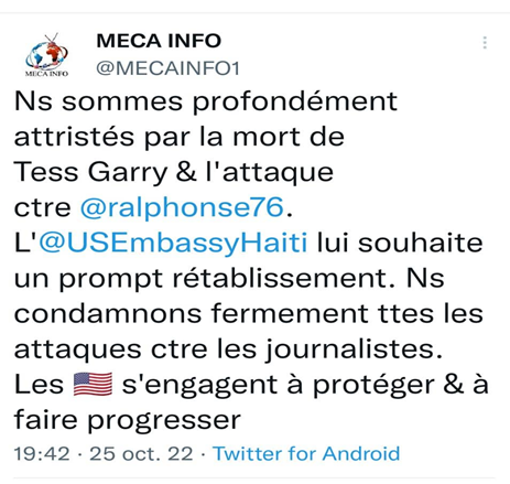 Je partage avec vous ces deux tweets dont j’ai vérifié leurs authenticités sur le site de l’ambassade américaine à Port-au-Prince.