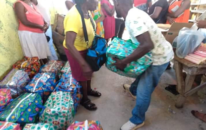 Anviwon 150 kit alimantè ak ijyenik distribye nan depatman Nip, se jefò UNICEF Haïti, IHCD ak Fondasyon Tè Ble, jounen samdi 11 fevriye 2023 a.
